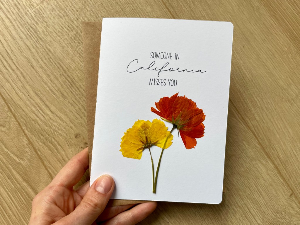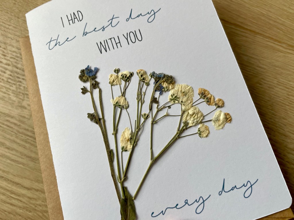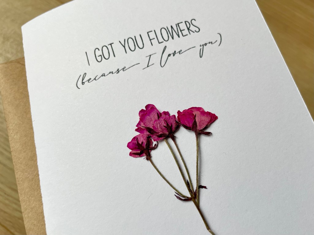 All of these little cards are handmade with real pressed flowers! I tried to cover as many occasions as I could: mother’s day, declarations of love, wishing a friend luck for a new job, or just telling a loved one you’re thinking of them. There’s more coming too, so let me know if you want a pressed flower card for a specific holiday!