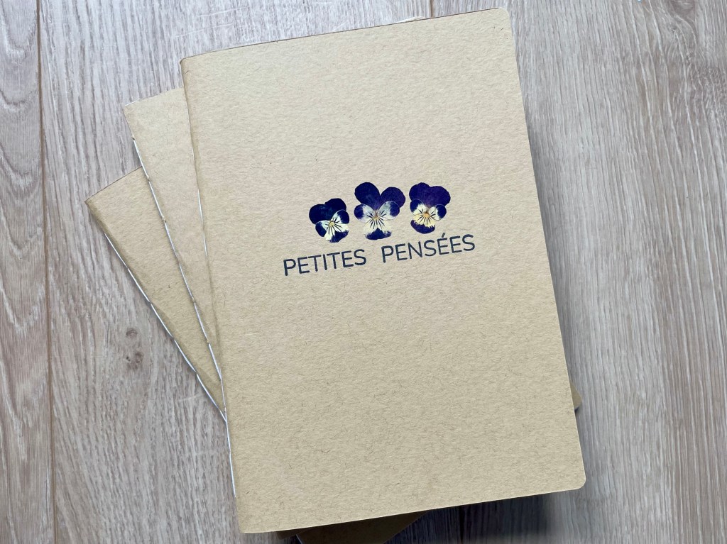 This little A5 notebook is one of my favorite additions to the collection. “Petites Pensées” means both “little thoughts” and “little pansies” in french, so I thought it’d be cute to create a small journal to write all your thoughts in that also had pressed pansies on the cover.