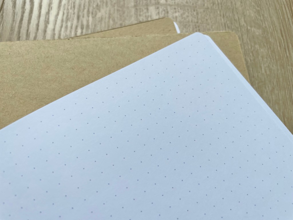 As much as I love the cover design, it’s the inside I’m most excited about because this journal is made with my favorite paper for writing: Clairefontaine paper. This french paper is famous for how well it handles ink, which has made it a favorite in the fountain pen community. It’s also super smooth (so no resistance when writing) and 120gsm, which means the pages are thick enough that ink won’t bleed through (so you can actually use all 60 pages). I also handbound the pages so that they will lay flat when you write! And of course, the pages have a super versatile light blue-gray 5mm dot-grid.