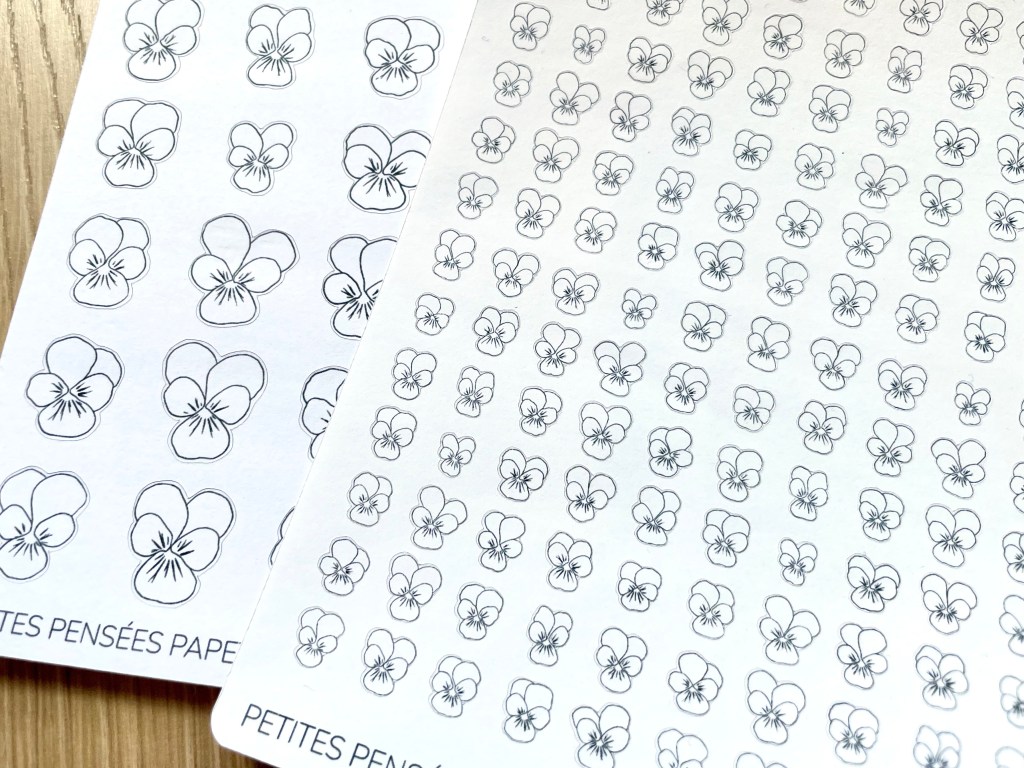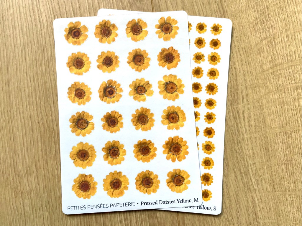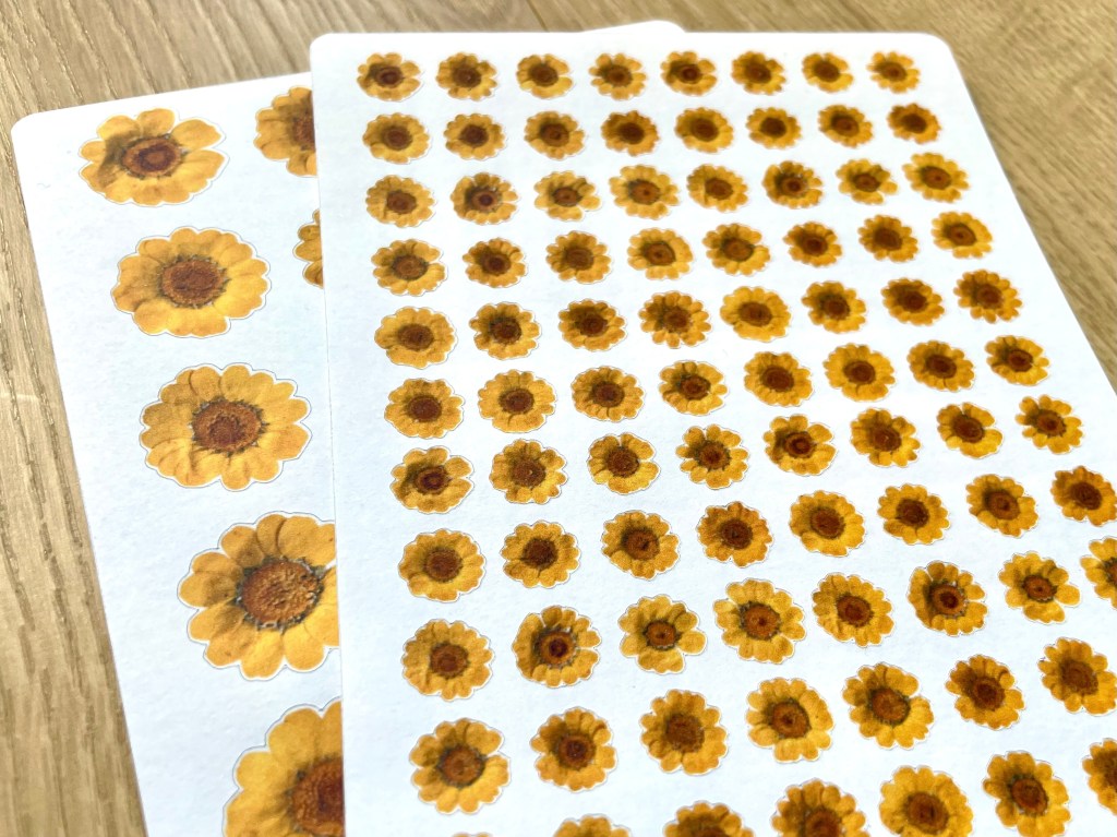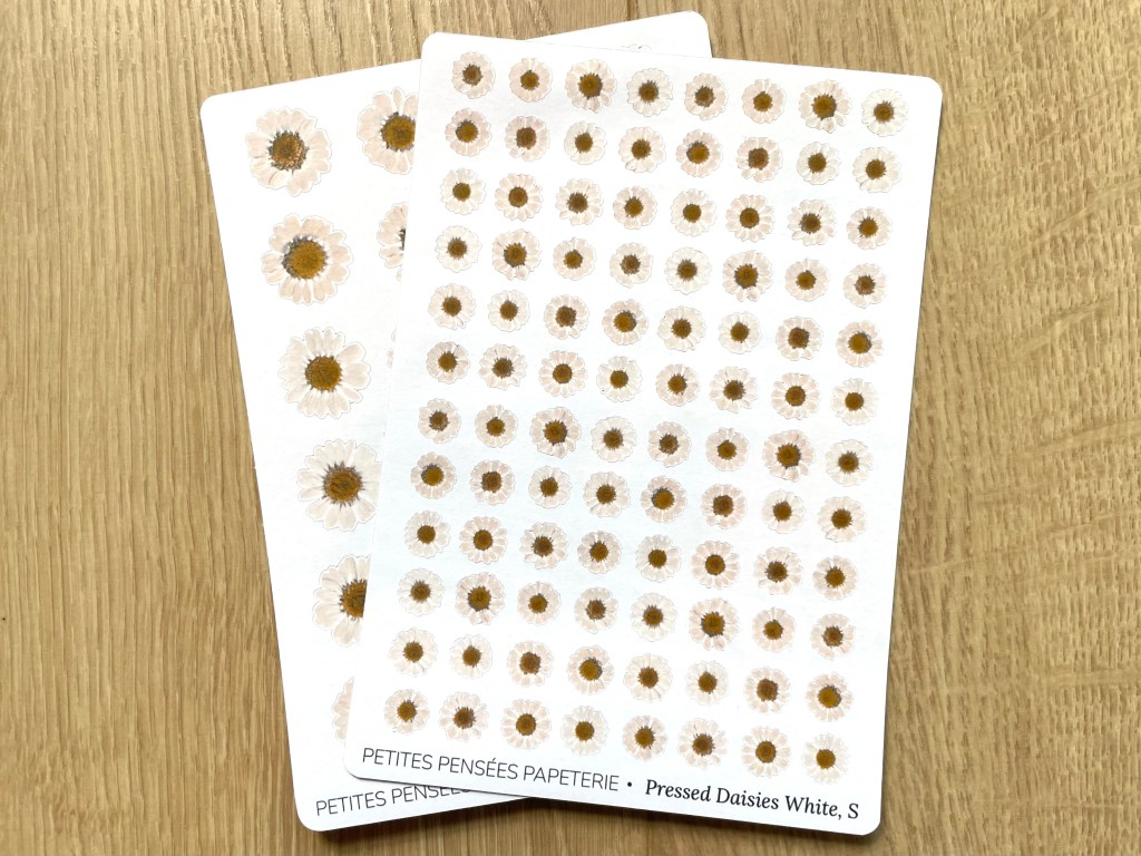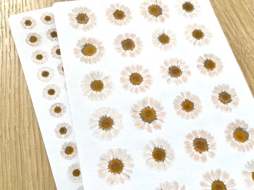 These are the perfect little stickers to add in your journal for a touch of nature’s beauty (without actually having to go pick flowers and press them yourself). So far, there’s pansies, white daisies, yellow daisies, ferns, and mixed flowers depending on the colors you want to decorate your journal with. Your can choose between white matte stickers, which have a paper-like texture you can write on, or clear matte stickers, which blend seamlessly onto the page.