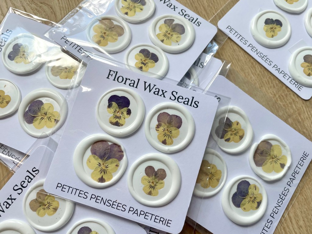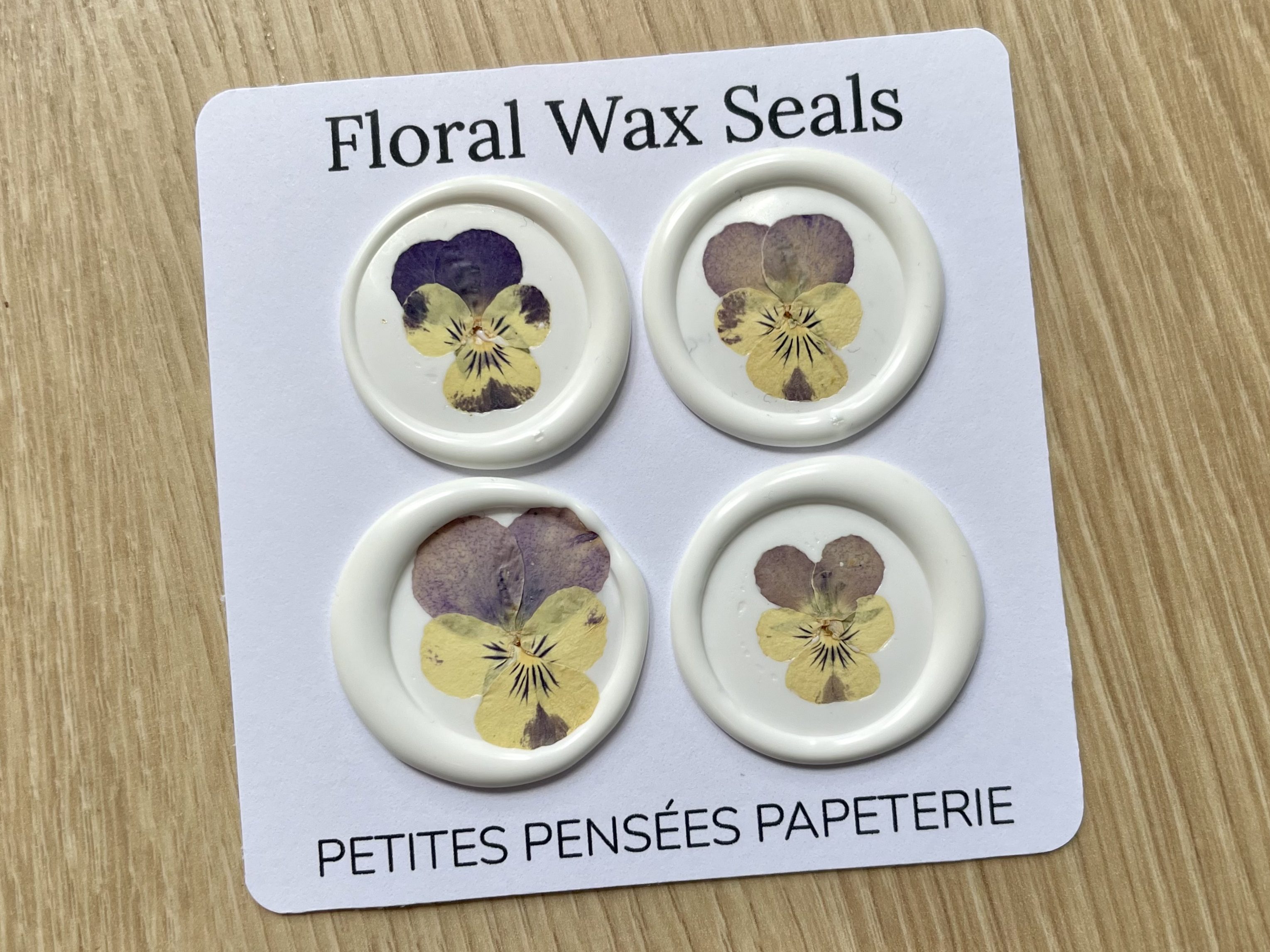 These pre-made wax seals come with an adhesive backing so all you have to do is stick them onto your envelope and send! Of course, these are handmade with real pressed pansies and so each seal in the set is unique.