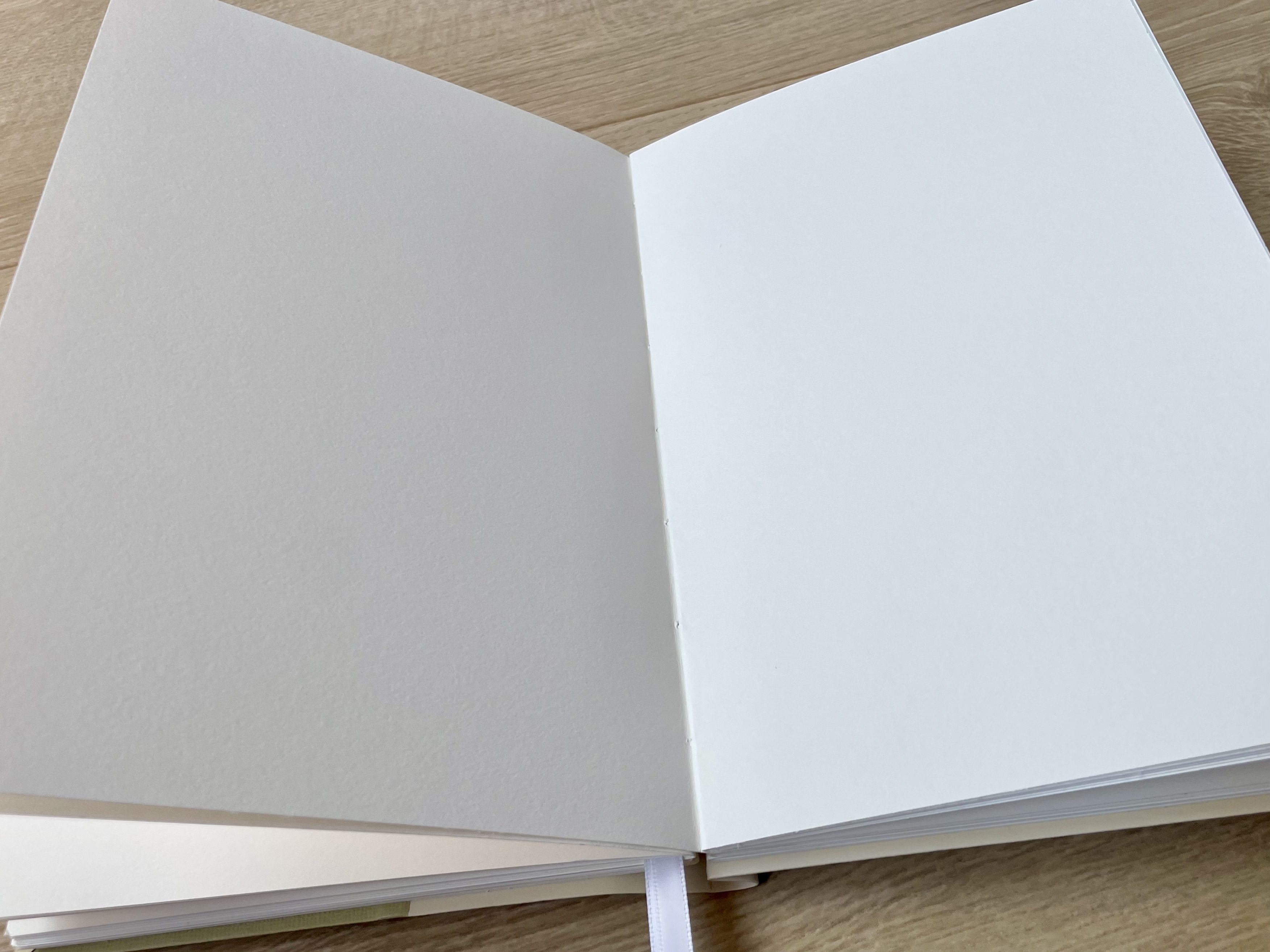My writing journals feature 136 dot-grid pages of 120 gsm smooth writing paper, which makes it ideal for long-form journaling and bullet journaling. And the best part is that the high-quality paper can handle all types of ink – yes, even fountain pens! I recommend this journal for when you plan to be writing lots and want a smooth writing experience (you know, without textured paper slowing you down or your hand cramping up).