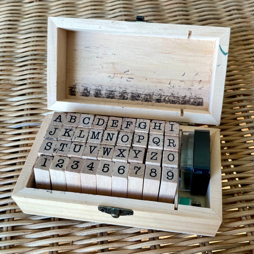 To go along with the romantic theme and match the vintage aesthetic of the patterned paper, I used my favorite (clearly overused) typewriter font alphabet stamp set with brown ink.